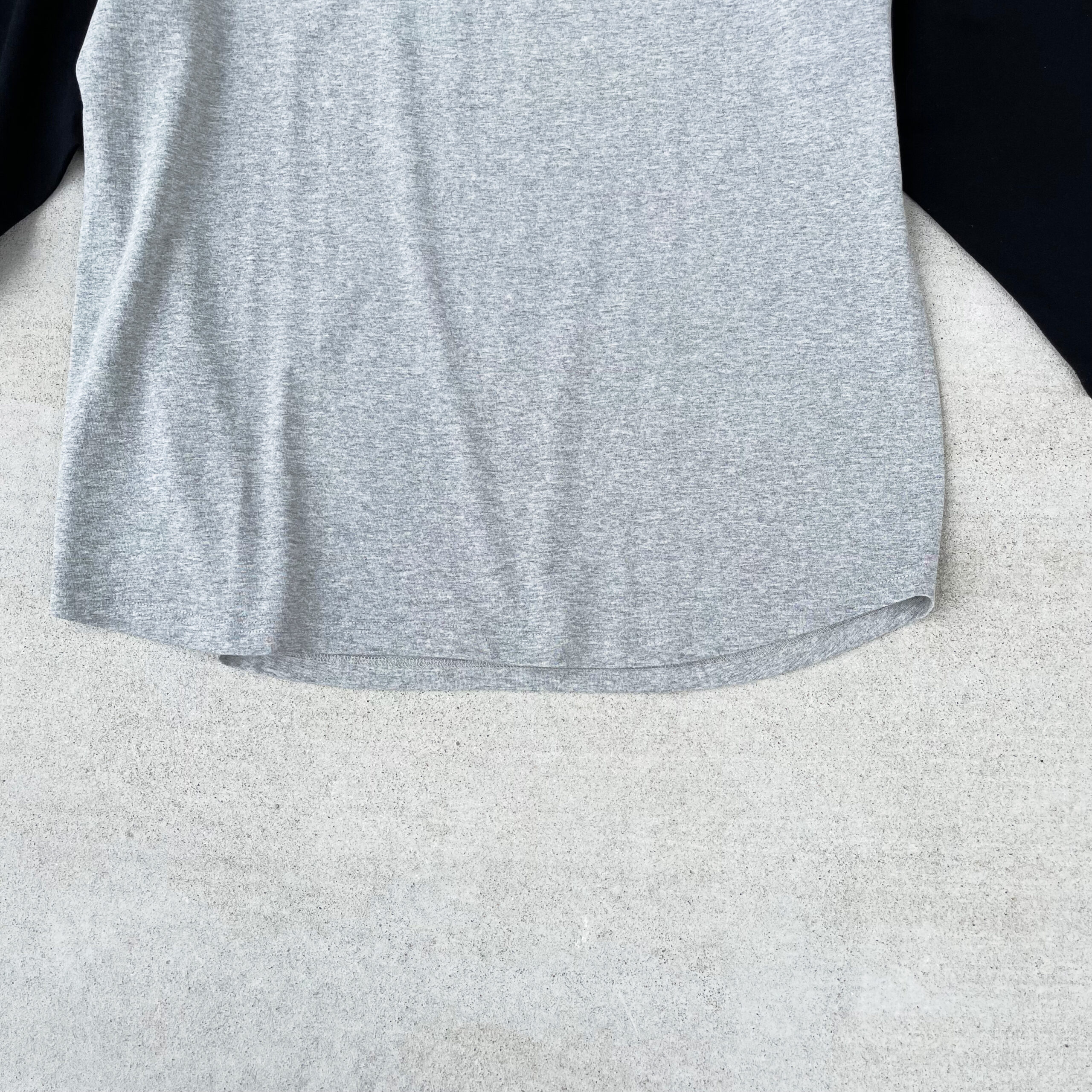さてよく耳にする[ラグランシャツ]ですが、なにかというと、首周りから袖にかけて切り替え線の入ったシャツのこと。
