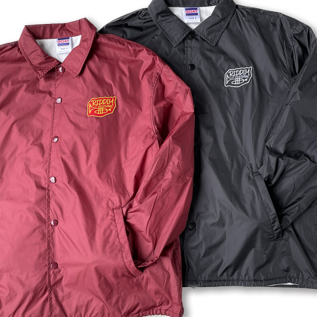 ボブ・マーリーの名曲’TRENCHTOWN ROCK’のリリックを背中にプリントしたコーチジャケット。