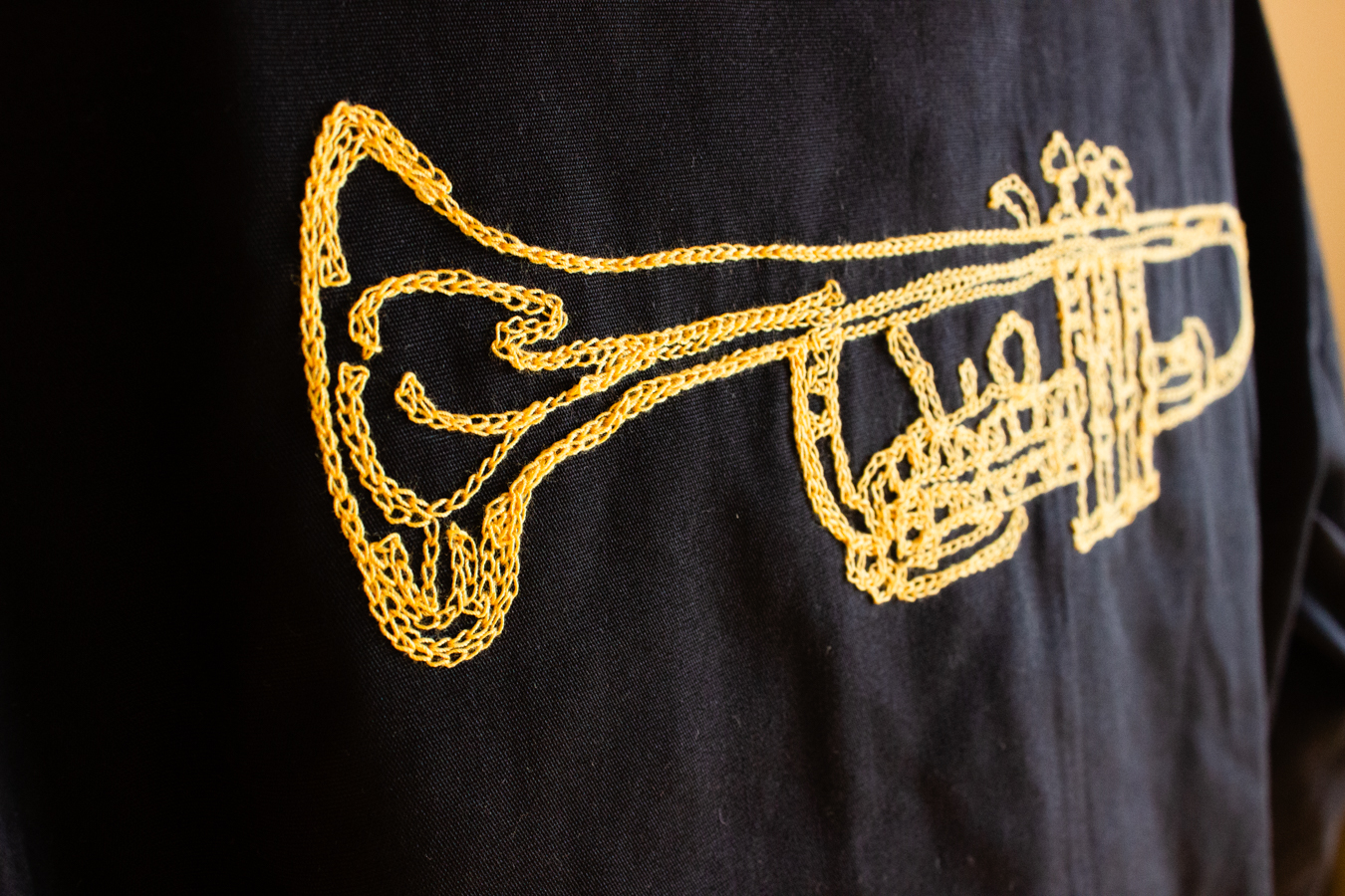 バックのトランペットは、RIDDIM CLOTHINGのメインロゴでもお馴染みトランペット。チェーンステッチで描かれ、味わい深いテイストに。