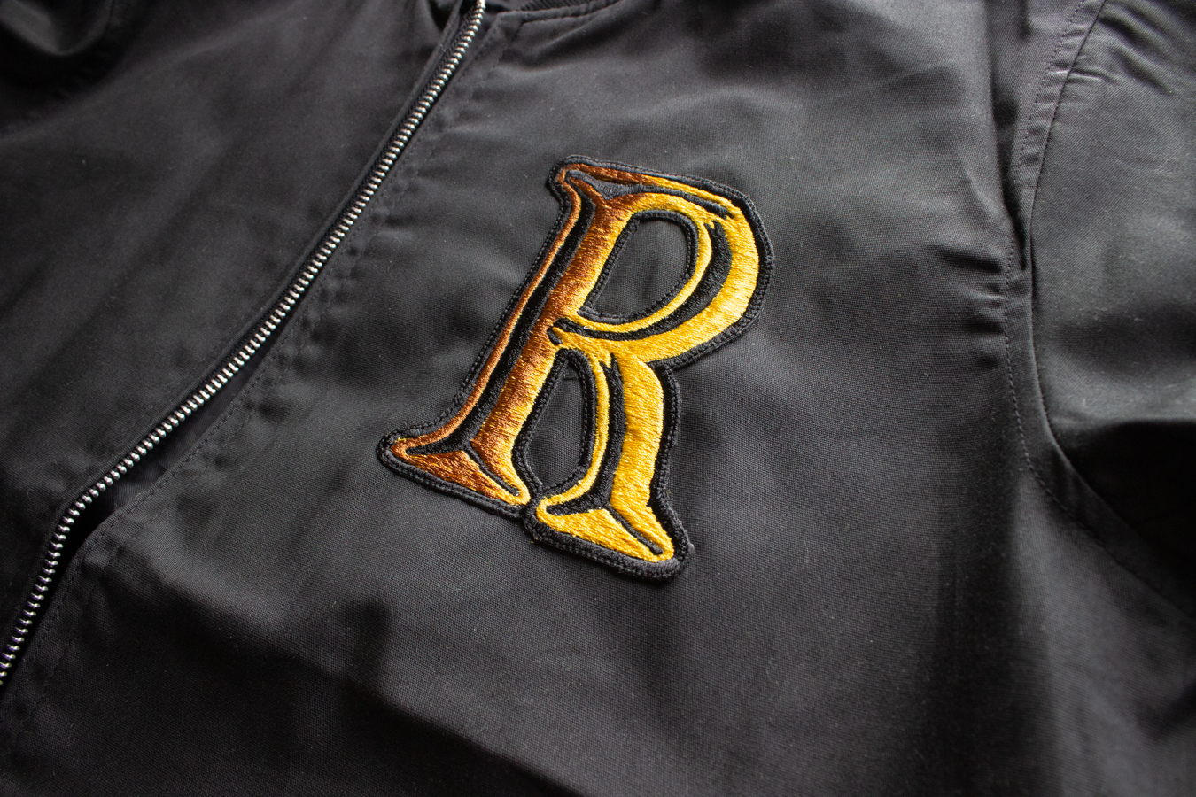 フロントの”R”ロゴは横振り刺繍でグラデーションを見事に表現。